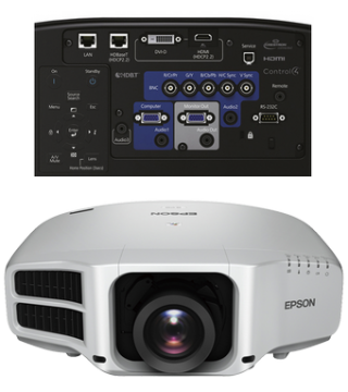 The EB-G7805 projector is compatible with a wide range of external devices, and additional ports now include DVI-D, HDMI and HDBaseT. Ideal for large venues, HDBaseT can transmit Full HD video, audio and Ethernet at low cost through cat 5e/6 cables up to 100 metres.