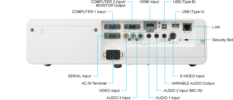 -Connections HDMI in , RGB, S-Video, Audio, LAN Rj45, USB A, USB B